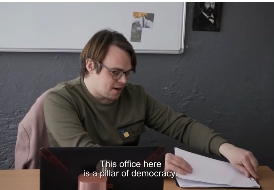 The film introduces us to Pavel Abdulmanov, a by-the-book, patriotic teacher, who somehow wins the area’s best teacher award, lecturing the grade school students on the “economic component of hybrid warfare” and the way Europe is suffering at the hands of Russia’s superiority. The “French will soon be like the musketeers,” he boasts, and I think of Lutnick and Bessent.